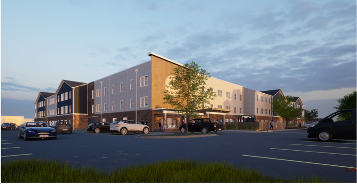 The project involves the new construction of two 3-story buildings totaling +/- 115,800 SF. The mixed-use development will consist of 120 units of affordable housing and +/- 4,400 SF of commercial space.